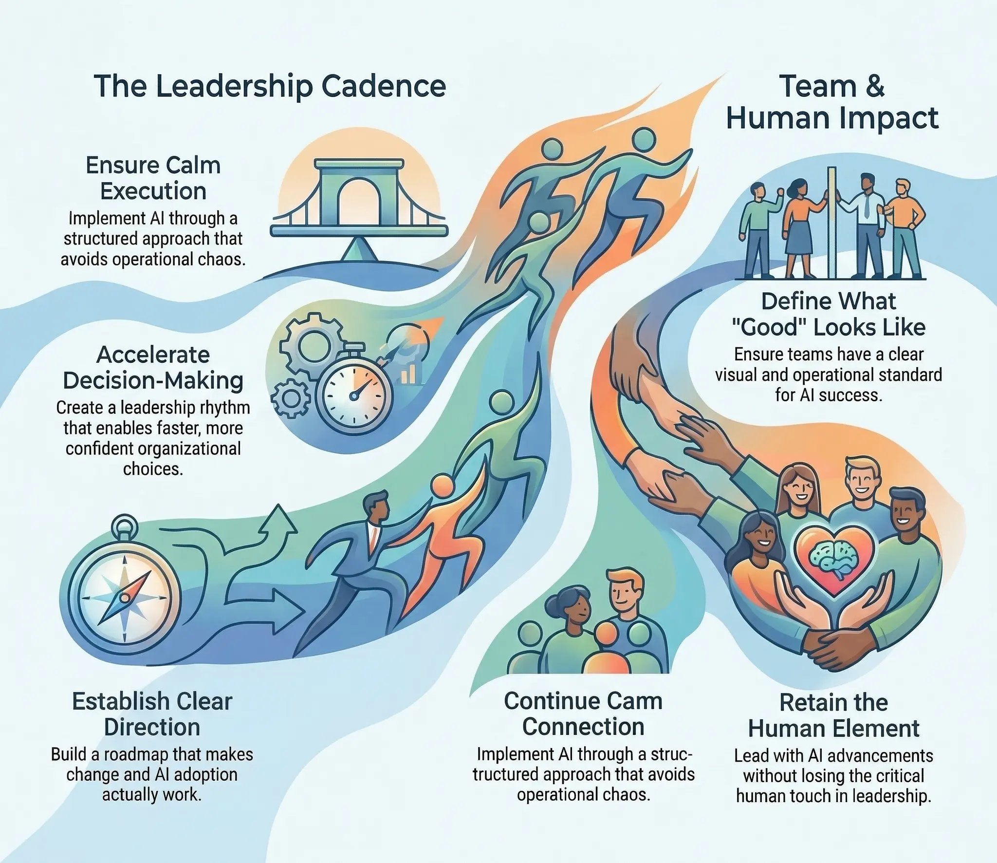 It means leadership that makes AI adoption usable, safe, and measurable, not chaotic. When we align on outcomes, choose the right use cases, set clear guardrails, and build an operating cadence so AI becomes part of how work gets done.